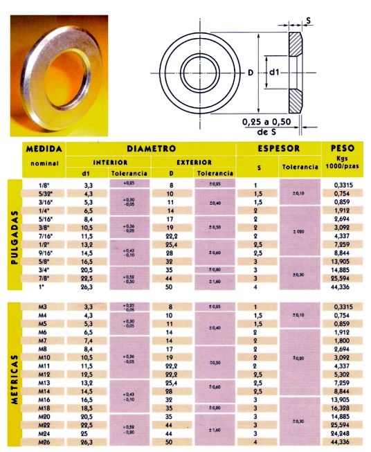 Las arandelas biseladas son utilizadas en la construcción de dispositivos mecánicos y su objeto es dar una mejor presentación al producto, son arandelas