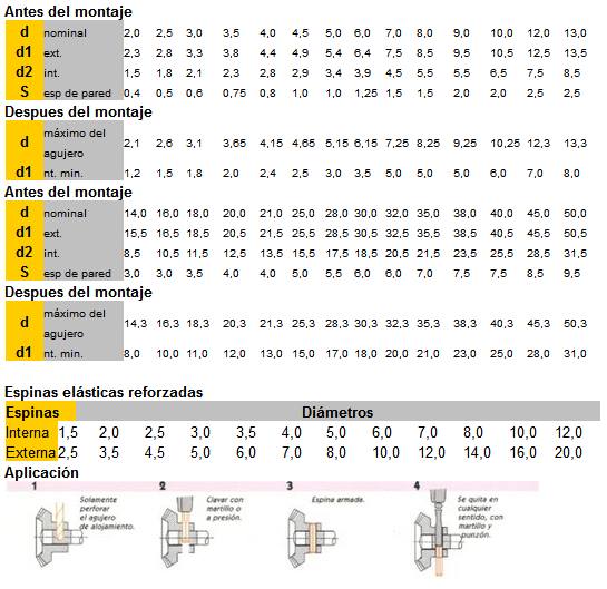 Las espinas elásticas son cuerpos cilíndricos huecos, que longitudinalmente tienen una ranura de un extremo a otro y un chaflán en uno o en los dos